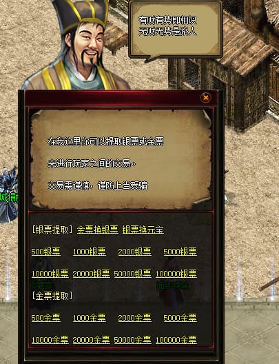 <[银票提取]/SCOLOR=150> <金票换银票/@JHY> <银票换元宝/@YHYB>\ \